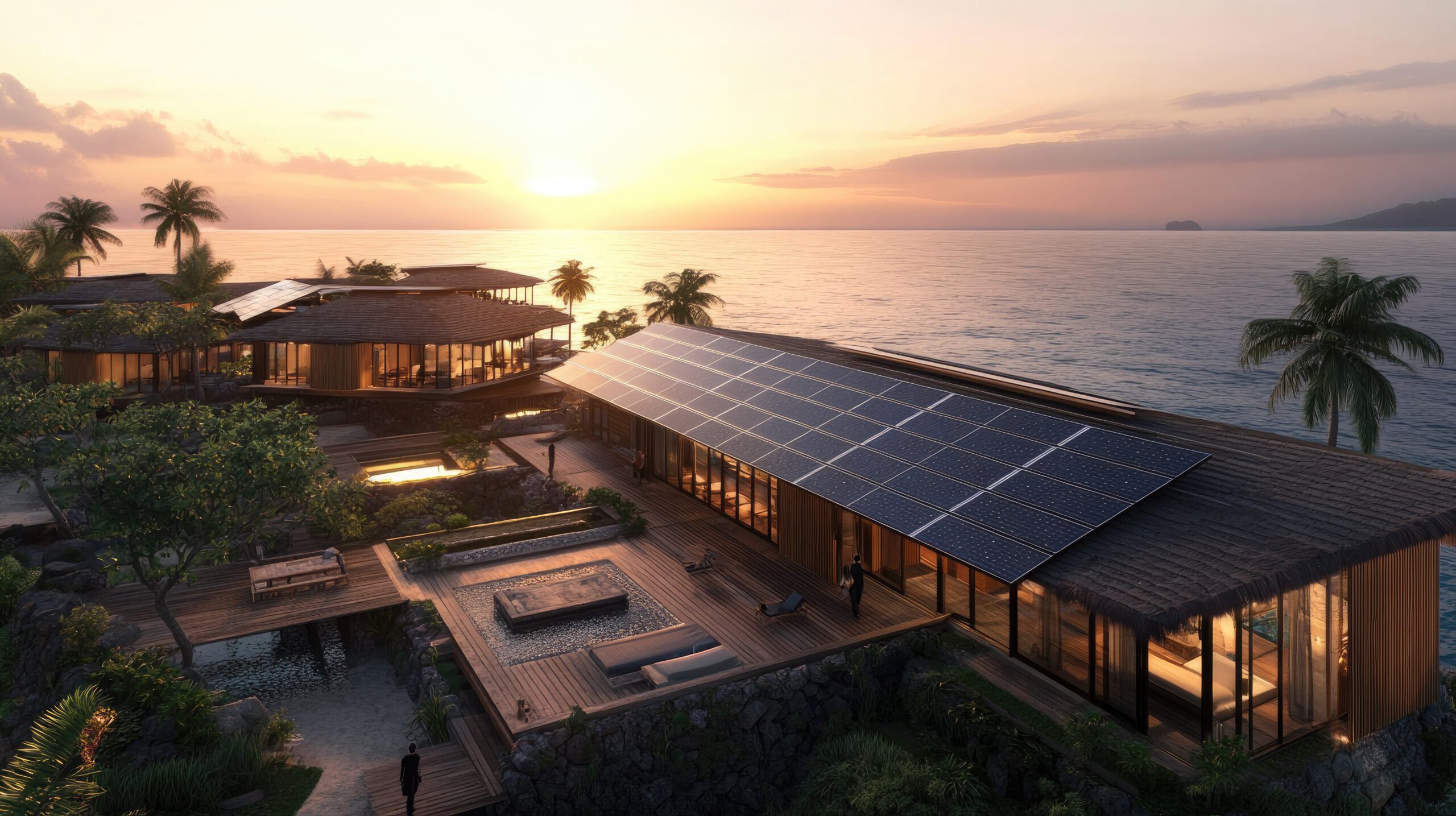 Eco-resort microgrids Solar-battery-diesel hybrid systems powering remote lodges, island resorts and nature retreats.